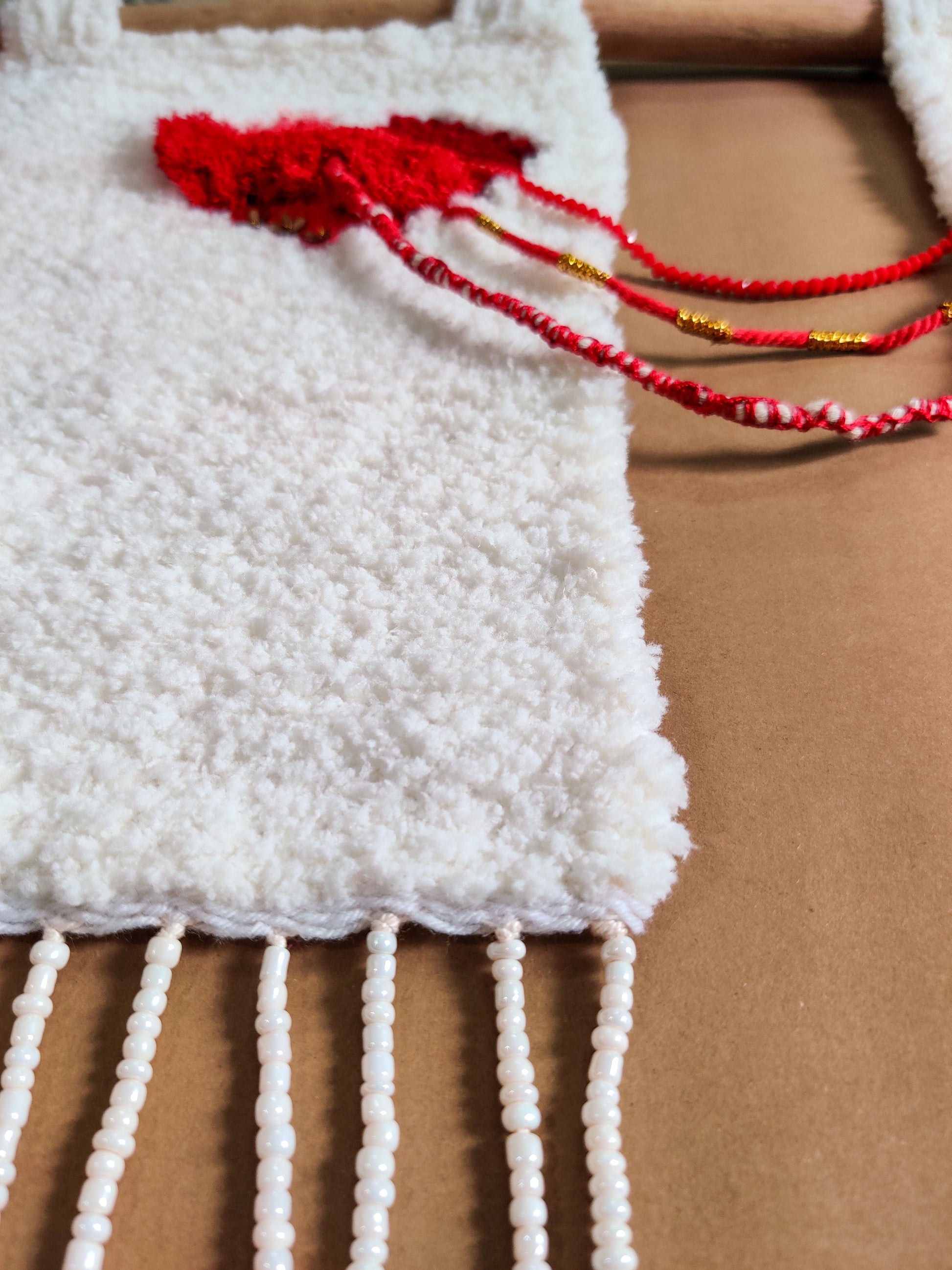 I've made this keeping in mind about the strong HEART TO HEART connection between mom and her baby. This art piece is made in weaving.